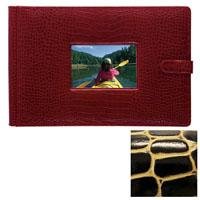 --> Details : Raika #177 Handcrafted Top Grain Leather, 4-in x 6-in 4-up Post Bound Photo Album, with Front Cover Window, Crocodile Print With Gold Highlights, Color: Jungle Black